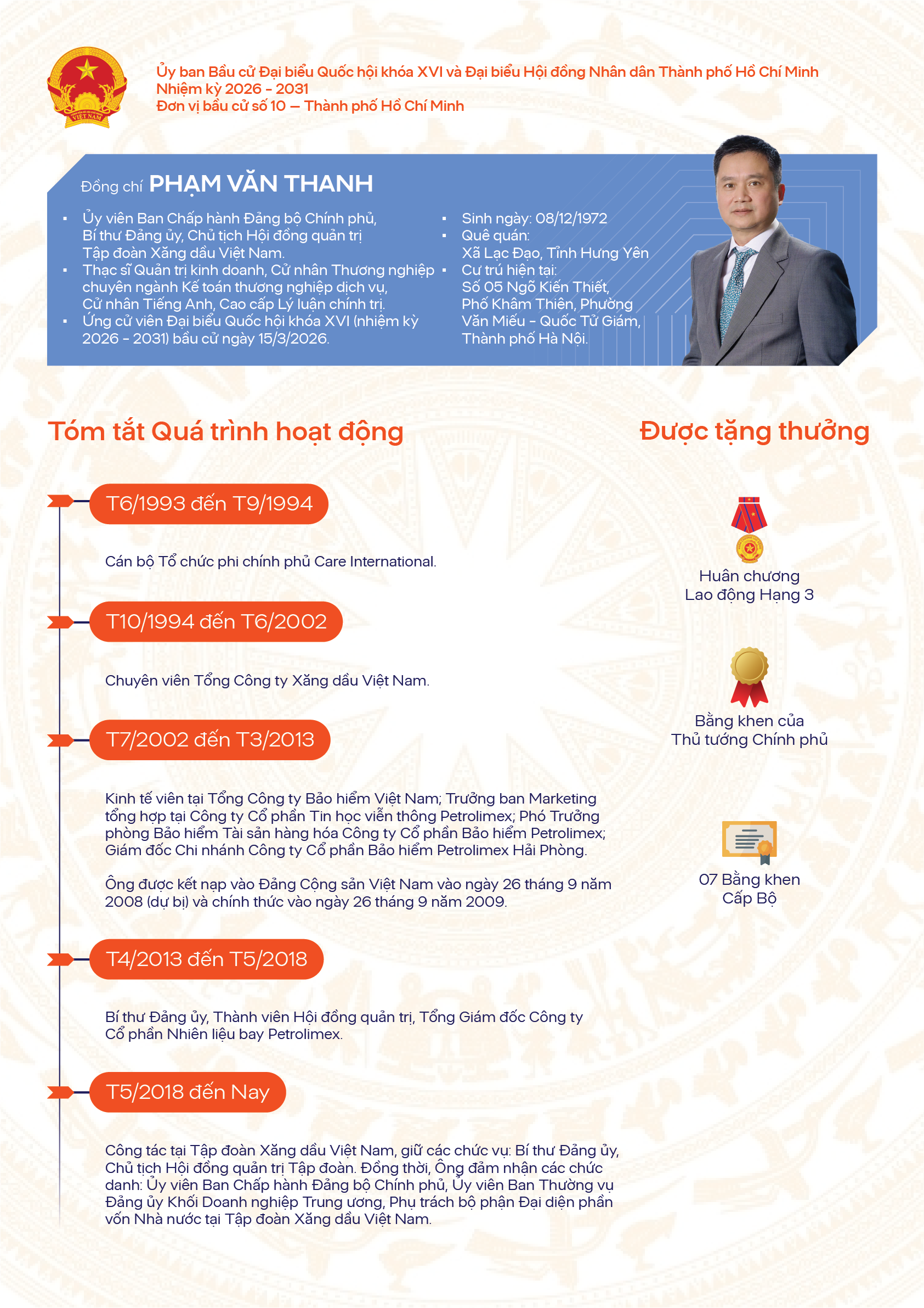 Đồng chí Phạm Văn Thanh ứng cử đại biểu Quốc hội khóa XVI tại đơn vị bầu cử số 10 - Thành phố Hồ Chí Minh